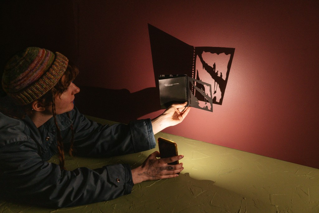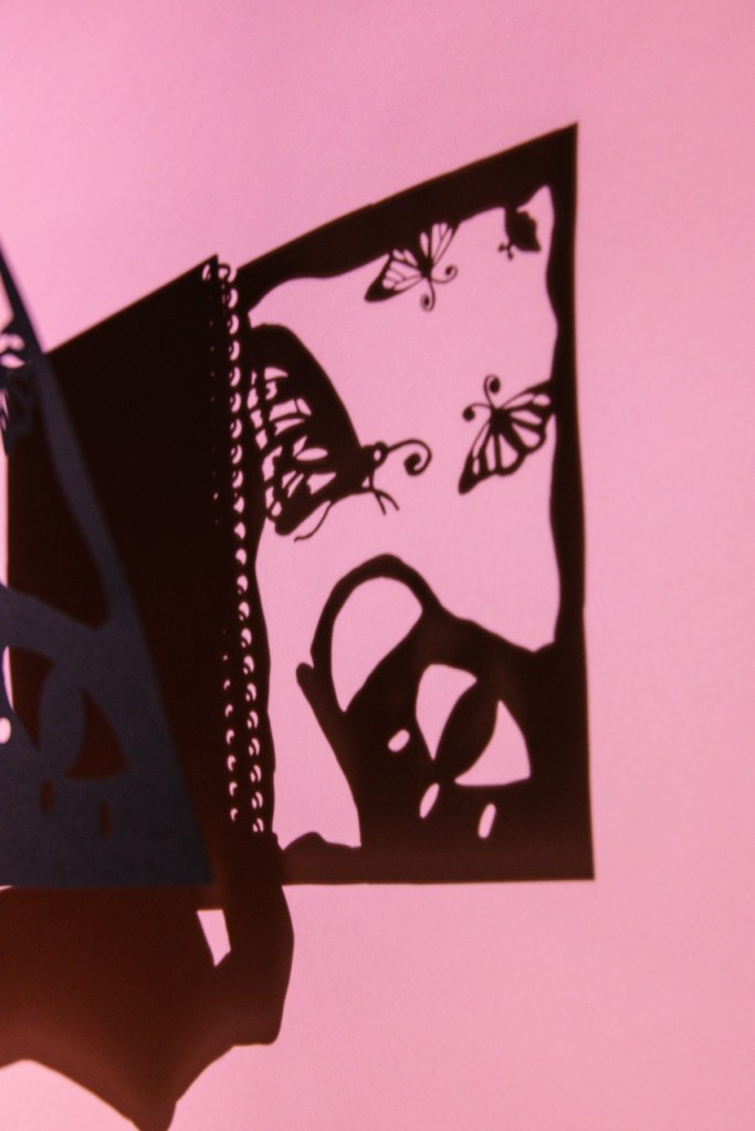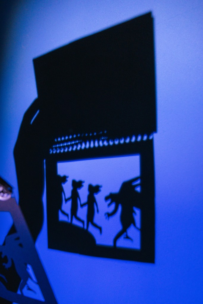 What started from an experiment has become one of my favourite mediums for storytelling and puppetry. In 2024 I invented these shadow puppet books, which are hand made and interactive. They explore stories of ancient Australia from a fantastical and imaginative angle. Using a spiral binder and laser cutter, I have created these interactive books that can project shadow puppets into any dark space, simply point your phone torch at the page!